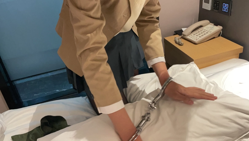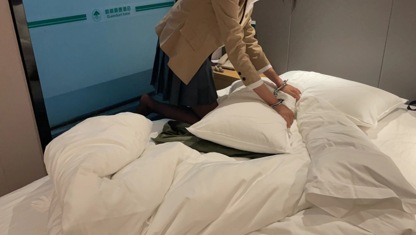 可爱的林念念穿上了麻衣学姐衣服,将双手伸出让我把她铐起来