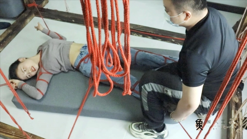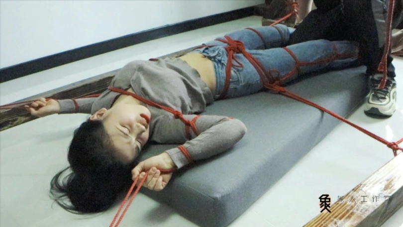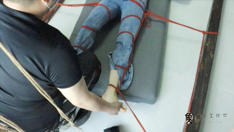 【象人】露脸牛仔裤,大字型捆绑拘束,痴汉挠痒占小便宜