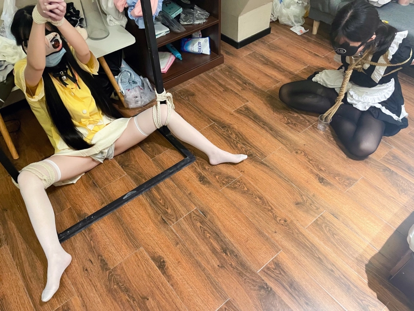 两个人不能同时调教于是将异梦捆绑放置在旁边口水收集