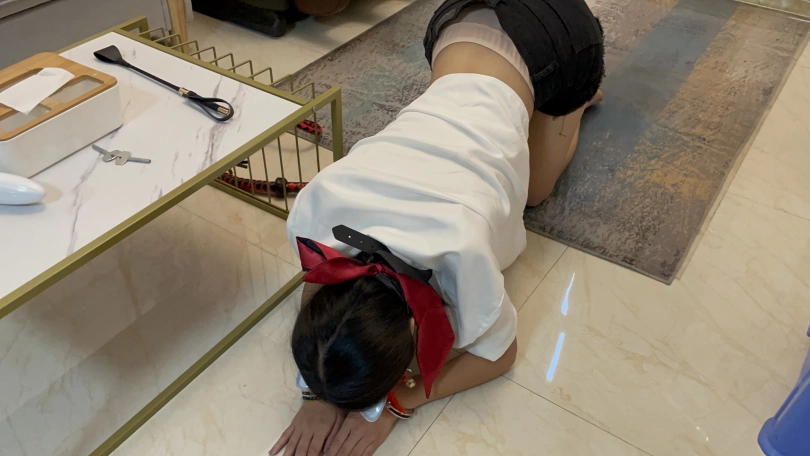 10.在身前三米放置地上防止一个盆装食物,侍女站在三米外,听到主人命令说吃,以最快速度趴过来吃掉。(反复3次,慢了主人随时鞭打)