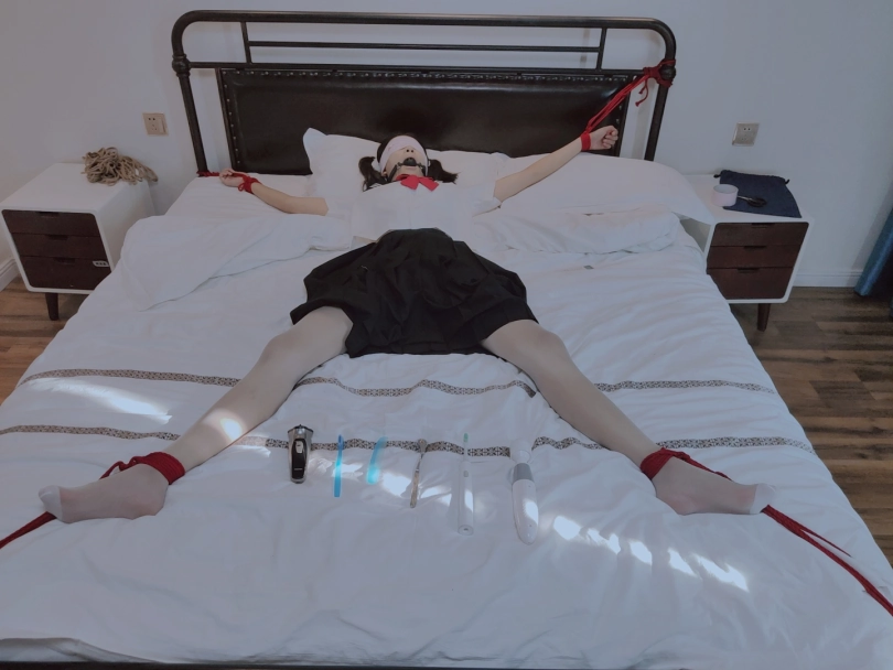 本次学霸小姐姐将体验人间挠痒地狱——四肢大字捆绑在床上动弹不得,蒙眼口球堵嘴+感官剥夺、两只脚心分别固定电动牙刷和小话筒,腋下和腰间也会被人无情的TK...