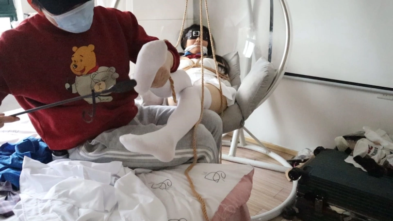 又给姐姐嘞上布条 堵上嘴巴继续欺负
