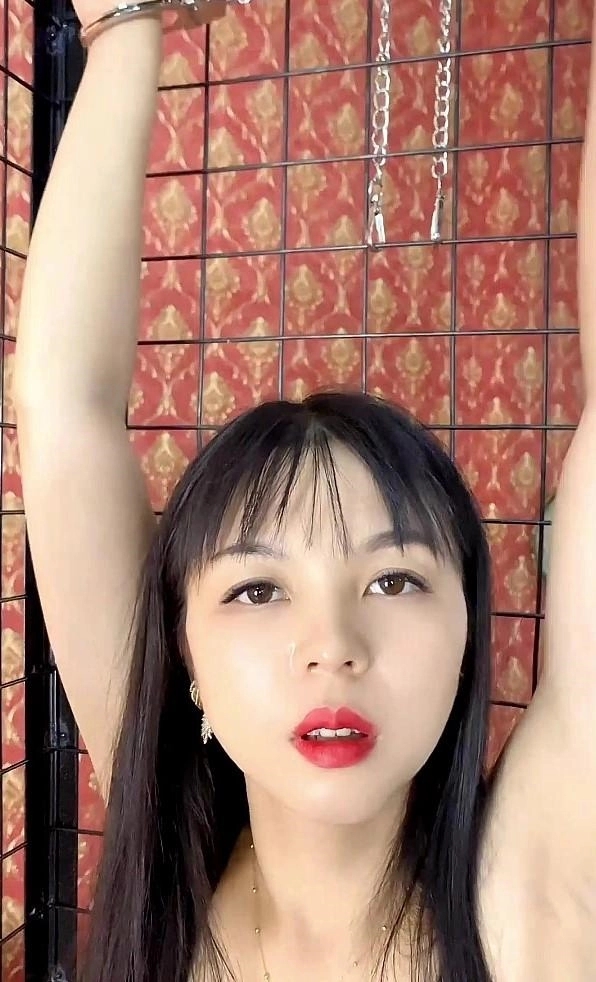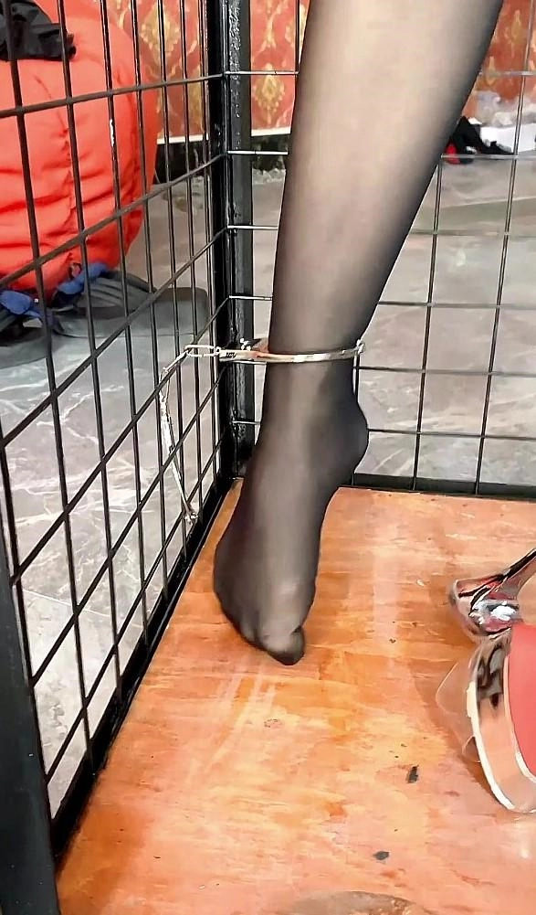 思思直立站在铁笼中,双手被吊挂铐住,双脚也被铐住,站在一个狭小的铁笼中,还被男子用皮鞭抽,棍子顶腰部,那种无法动弹感觉,我看着都很难受,思思居然坚持下来了,高跟鞋被脱下那一刻,冰冷的脚铐扯着思思的脚难受极了