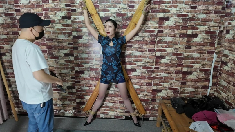林婷接到线报,前往歹徒秘密据点营救,不料被早已埋伏在门口的打手给抓获,打手知道林婷身手好,五花大绑不放心,又加上了脚镣,相见老大需要过刑讯关,老虎凳,吊,X架,大字捆绑,鞭打,几关下来把林婷折磨的奄奄一息,这还不算完,最后又被关到笼子里面,等候老大回来处置。