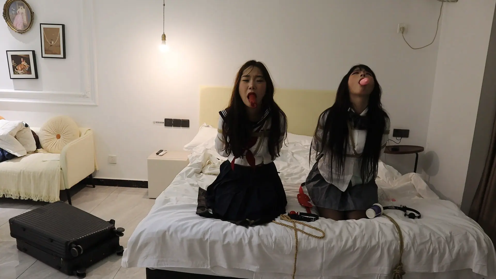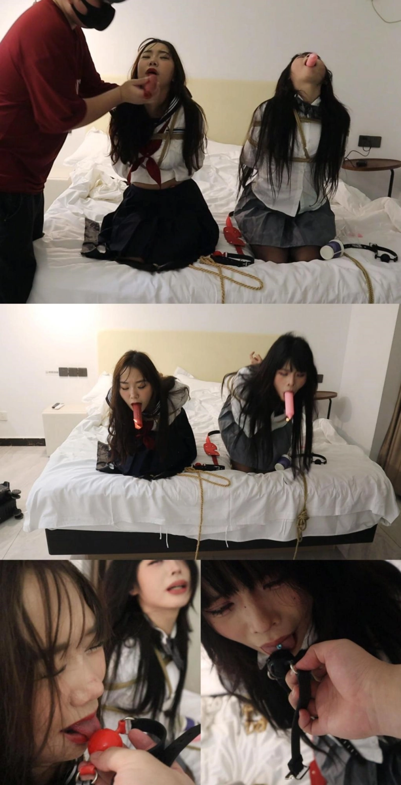 【荷仙少女】独家第二弹《荷仙剧本》《陌生男在302房间的学生姐妹捕获调教》2 强迫学生姐妹曼妮驴驴捆绑跪罚 震动+口球口水收集+香舌舔球+口含蜡烛滴蜡+言语羞辱+鞭打虐待 全程求饶直至崩溃