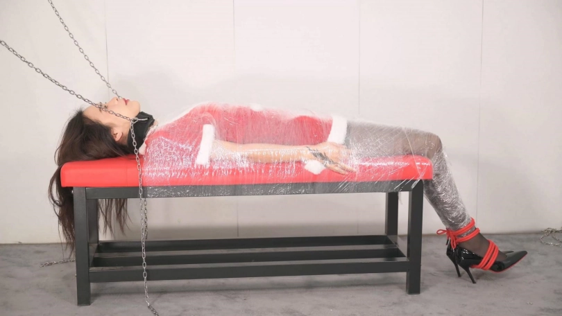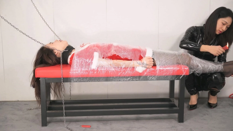 【撒琅制造】女捆女之言妍平安夜被女王沐小雨木乃伊包裹调玩--圣诞装、黑丝、高跟、百合、爱抚、刺轮、电击、滴蜡