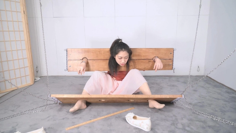 【撒琅制造】绳模沐小雨古装木枷固定,即兴发挥小剧情--戒尺、鞭打、TK