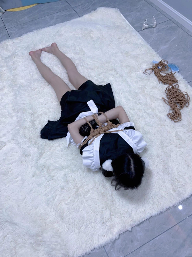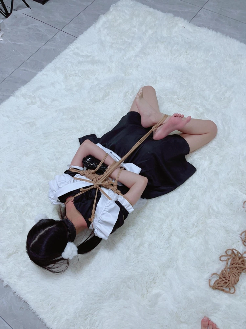 【咕咕精】茶茶的紧缚愿望1-裸足双马尾女仆装、超紧交叉反弓驷马、胶带封口鼻,超粉嫩脚底展示!手提驷马软妹!