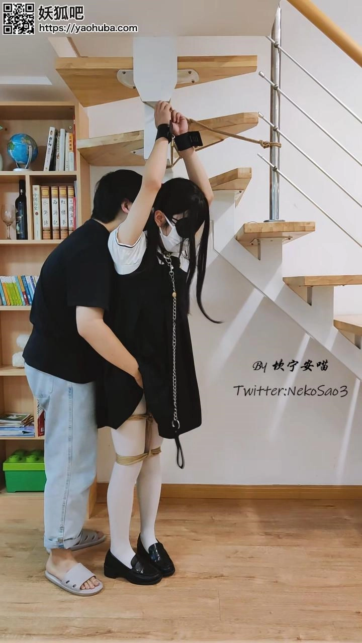 “这一天,心血来潮的坎喵决定把自己的双手吊起来,蒙眼后加上小玩具享受放置的快乐