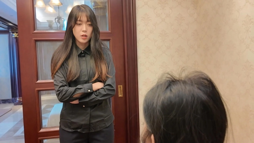 卧室内,富家女一个人蜷缩在床上,还没有从惊吓中走出来。突然客厅传来房门被打开的声音。吓坏了的她拿起一件防身物,小心翼翼走到客厅。她意外地发现来的正是当时和自己一起被绑架的女生,只是她换上了一身女士西装,感觉给人很不一样。