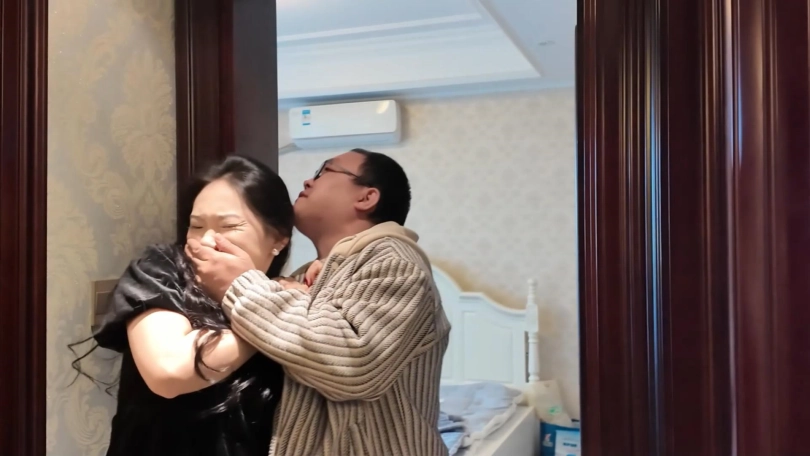 很久之后,卧室内。富家女醒来,侧过身拿起手机看了一眼时间,起床离开卧室。她走到客厅没发现女生的身影,只看见她的高跟鞋散落在地上。她回到卧室,打开灯,意外的发现床上的被子下盖着什么东西,刚才自己因为关着灯并没有注意。她走近,掀开被子。发现那位女生被捆绑着躺在床上,不醒人事,富家女吓得捂住自己的嘴,离开卧室想要逃跑,一出门就被男劫匪按住制服。