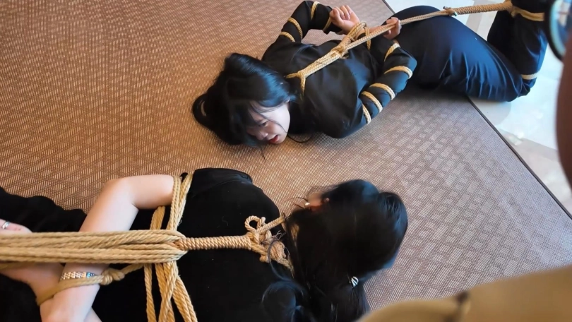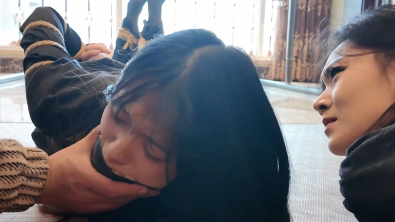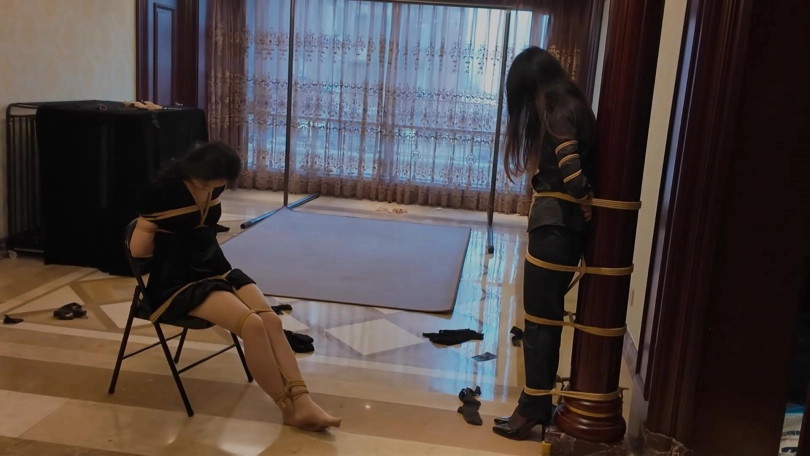 很久后,在一个密室里,保镖被绑在柱子上,富家女被绑在椅子上。她们二人的头依然被丝袜套着,捆绑囚禁。绑匪告诉她们不会有人来救她们,因为追踪器的信号早被屏蔽了。