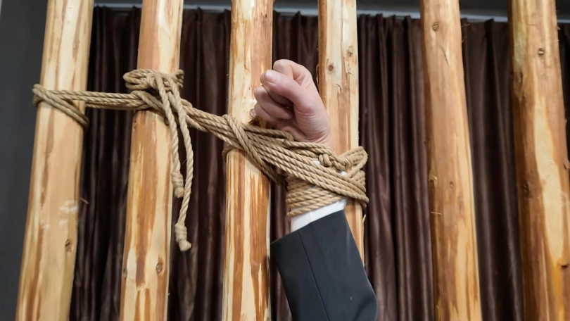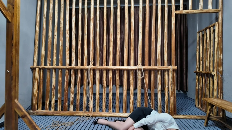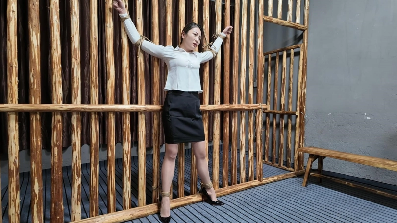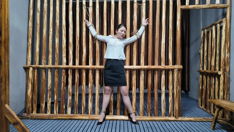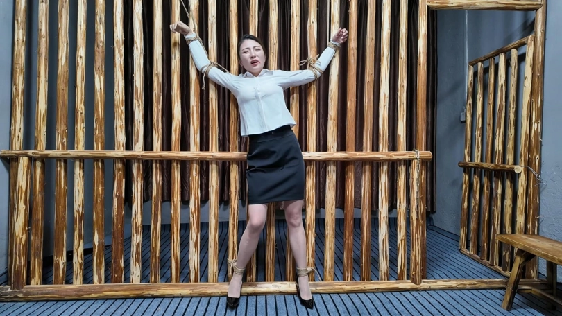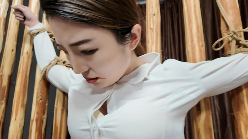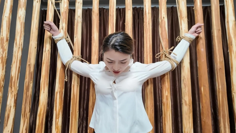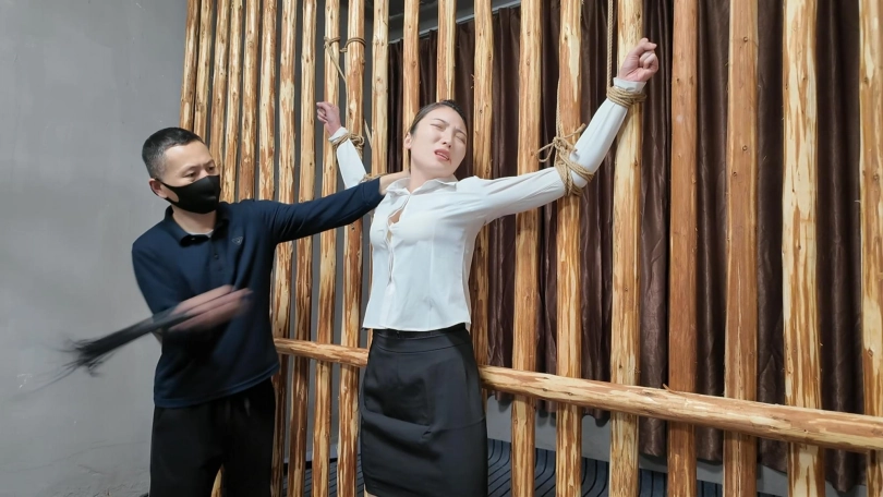 佳佳职业装被绑到牢房里面鞭打,衬衣扣子都打开了...最后直接晕过去了...