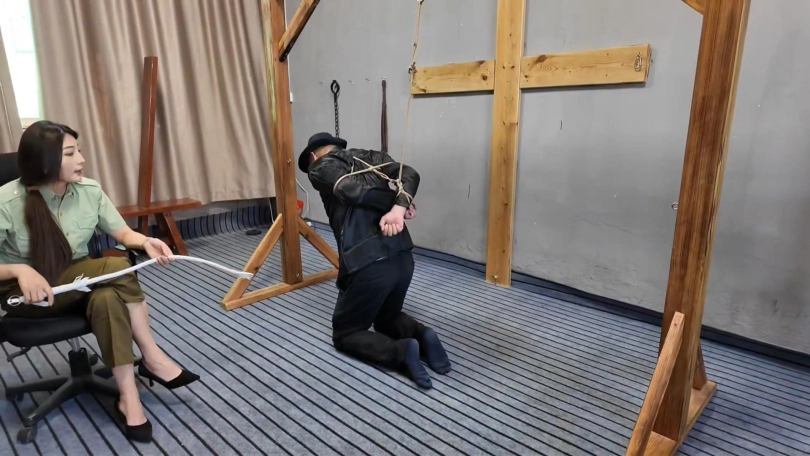 女军官在搜捕汉奸,把汉奸抓起来狠狠抽打,最后处决.....