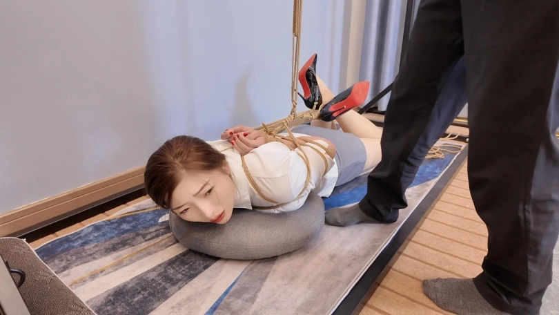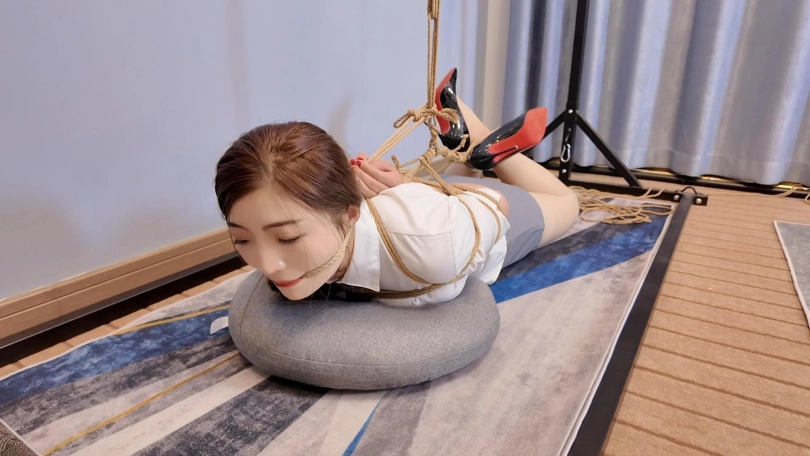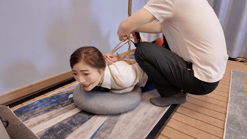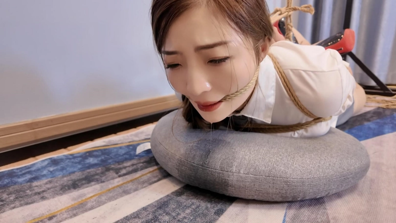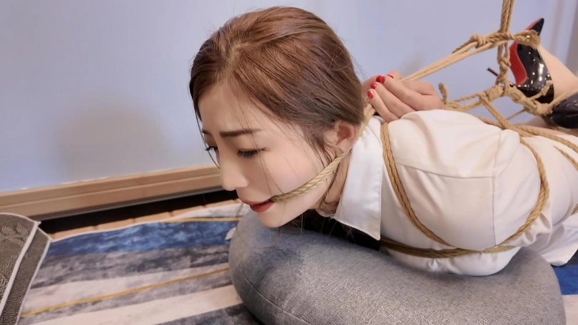 今天给佳佳来个她最擅长的后手观音,捆好之后她没有想到还要驷马,用绳子吊着控制,接下来在用绳子勒上嘴,让她感受一下绳子勒嘴的感觉