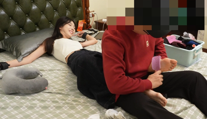 由于这个模特不怎么怕痒所以改拍恋足的,妹子很很享受