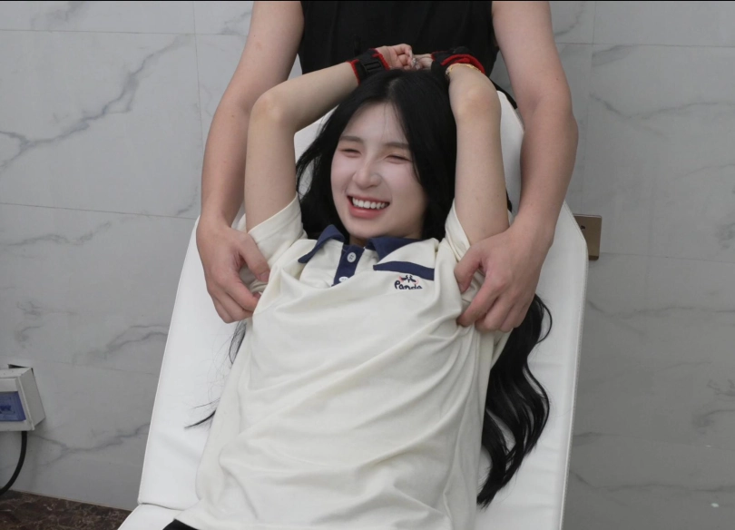 小瑜全身都很怕痒,还特意做了个粉紫色的猫眼指甲特别好看,笑的声音也很好听,脚丫很嫩,脚型好看没有茧子,粉粉的,挠起来手感特别好,涂上痒痒油之后更光滑痒度再次提升,工作室充满了小瑜的笑声