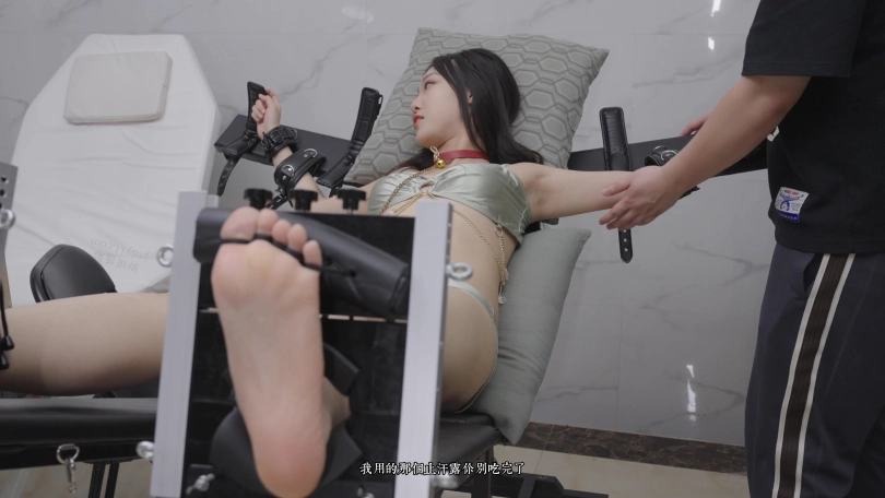 然后两个主人把她哪到椅子上,一边挠她二边天她的腋下。