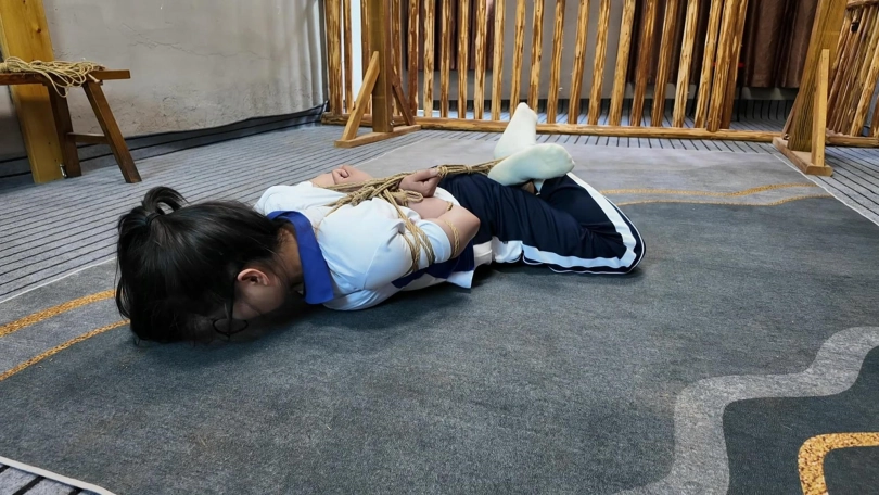 小遥逃学,被教官抓回管教,先吊到树上,又绑到椅子上面打屁股,又吊起来放置,没想到小遥自己慢慢解开,刚想逃跑,又被抓回,这下驷马紧缚,看她还跑不跑,罚深蹲,蛙跳