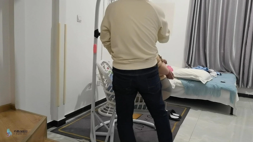 医生被扒掉外套,只剩内衣裤和丝袜棉袜。她被绑在吊椅上,两腿被分开捆绑。男人脱掉她的一只棉袜塞进她的女医的嘴里,再套上丝袜头套,用胶带缠绕嘴巴,防止她吐出嘴里的棉袜。再给她戴上一个厚口罩,里面放进去她的另外一只棉袜。让她闻自己的臭袜子。这么做的好处还是很多的,能限制她的呼吸,得不到足够氧气就没力气挣脱;能削弱她发出的声音;被自己臭袜子熏的晕晕的,也没精力想逃跑的事了。男人有拿出乳jia夹在她的胸上,疼痛的感觉瞬间传来,这让她更不敢有大幅度动作。然后男人拿出棒棒对准女医敞开的门户就是一顿疯狂输出。这种强烈的刺激爽感,让女医身体猛然一震,随后发出痛苦并享受的呻吟声,她的脚趾开始弯曲,抖动。看得出下面非常的刺激,但又不能有大动作,否则胸部会很痛,再加上嘴里和鼻子上的臭袜子味道熏着,这还真不好说是一种什么感觉。。。随后男人给女医换了个姿势继续调焦,她让女医跪绑在椅子上,前方的铁杆上固定着一个假J,戴着眼罩的女医将玩具含在嘴里,不断的来回口胶着,同样,下面被固定着棒棒,在不断的刺激着她。这个姿势是非常的难受的,女医在难受和[X_X]中煎熬着。男人觉得调焦的差不多了,过来告知女医已经为她找好了买家,走之前要看看她口胶训练成果如何。说完男人脱下了裤子,将女医的头按下去,做着动作,并传来吮吸的声音。