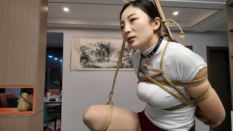 第二次带佳佳外出,带绳模外出必须捆上,白色体恤搭配红色绳子五角星,还是非常漂亮的,先去花卉市场,把工作室的几盆花更新一下,在带她去吃个饭,吃完饭带她去逛商场,抓娃娃,看电影,玩了一天,到家了免不得要吊起来调叫一番