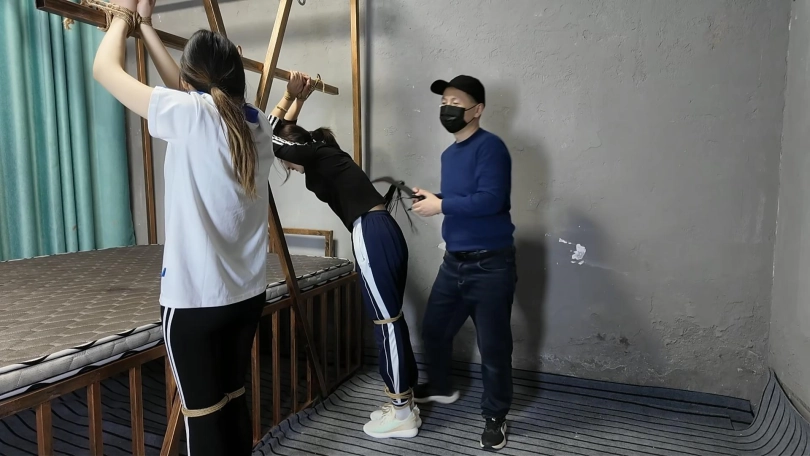 贝贝是一个非常可爱的小女孩,爱哭爱笑,在这场随意变换造型,SP加TK的游戏中,笑着笑着就哭了,打哭了又被挠笑了,一场下来几乎每个姿势都被折磨的哭去笑来,本来是让晓琴摄像,既然是盲盒游戏,突然想到来个双人SP最后一幕更精彩