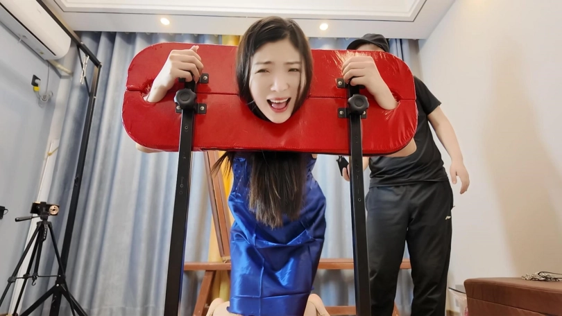 购买了一个新工具,正好佳佳到了,让佳佳换衣服试一次,换上一件蓝色睡裙,固定到架子上,开启快乐新模式,最后爽到飞起
