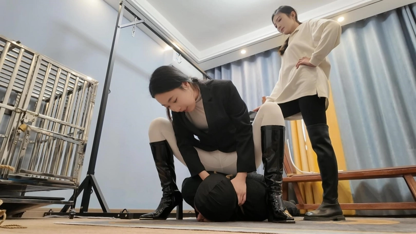 小韩回到家发现不对劲,没想到家里潜入一名小偷,练过功夫的小韩三下五除二就把小偷制服,经过审讯,小偷交代了很多之前做过的坏事,这个时候姐姐回来了,于是姐妹两个一起继续收拾这个无恶不作的小偷,耳光,踩踏,双鞭打,最后用绳子处以勒刑