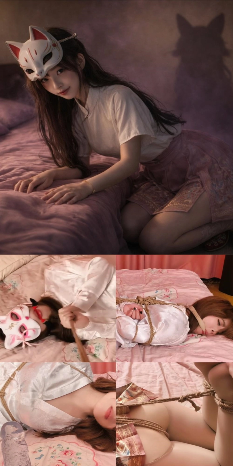 第一次请到露脸模特、可爱的安安;为了保持完整叙事、加强氛围感用grok做了一些转场动画算是一个新的尝试,不过不要担心会喧宾夺主:驷马股绳放置、口球丝袜堵嘴以及水晶假羊抽插、爱抚挠脚都是实打实的,小姐姐挣扎很卖力叫声很销魂。ps剧中男声都是我自己配的hhh不喜见谅。