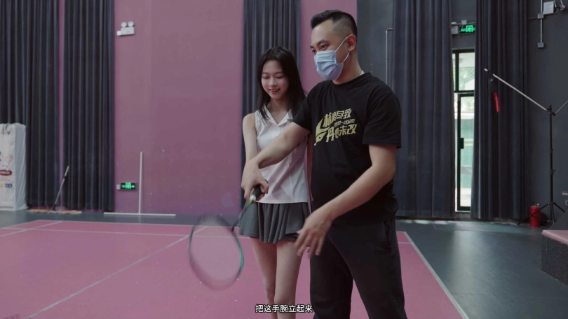 剧情故事:教练教腿腿打羽毛球,暴汗运动后跟着她回到家。