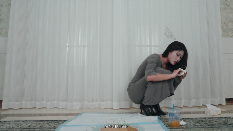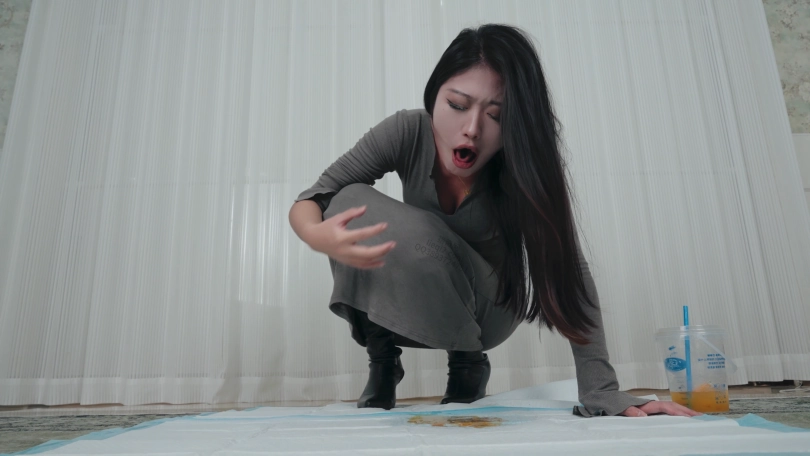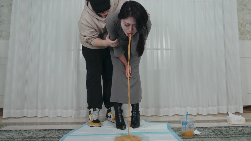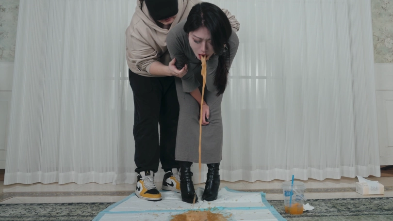 剧情;丝丝是个车展模特,今天刚刚参加完展会就来赴约。今天穿的长靴小码裙,很修身,把身材曲线凸显出来。她开车带我去了宵夜档,买了一大袋宵夜说约我喝点。我们回家后丝丝开始暴风吸入,吃的小肚子鼓了起来。随后买的鸡尾酒到了,两杯20度,一杯7度,一共三升鸡尾酒。很快就不胜酒力脸和身子开始发红。她说她快要吐了,于是蹲着自己吐,吐的脖子上青筋暴起,很难受但吐不出多少。我看她憋得难受,决定帮她扣。我一边按她肚子一边扣喉,我让她不要忍者声音,她发出呕吐声吐了一次又一次。最后看着满地呕吐物不敢相信吐了这么多。我掂了掂,呕吐物有三斤。呕吐时长双机位约20分钟。