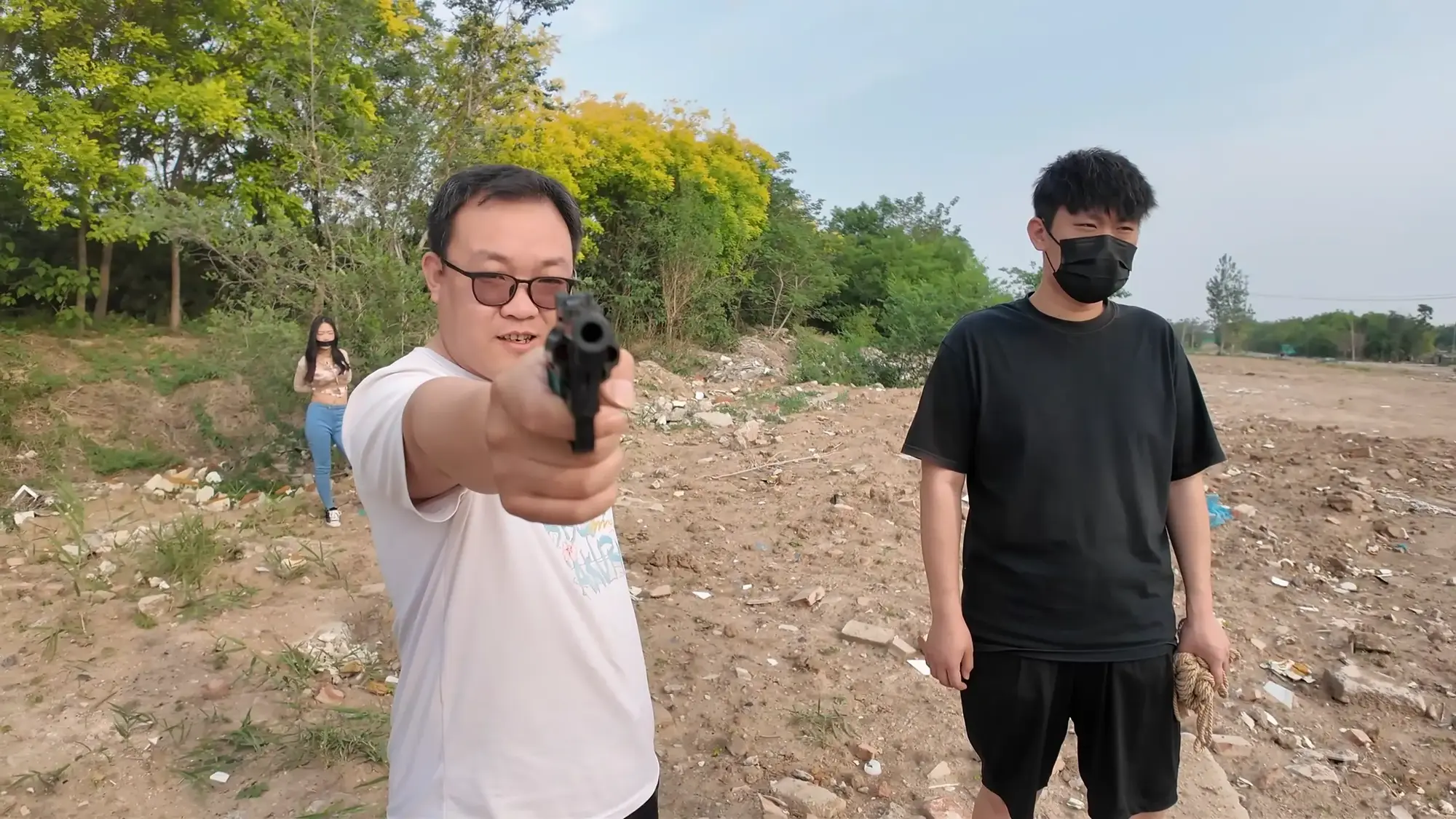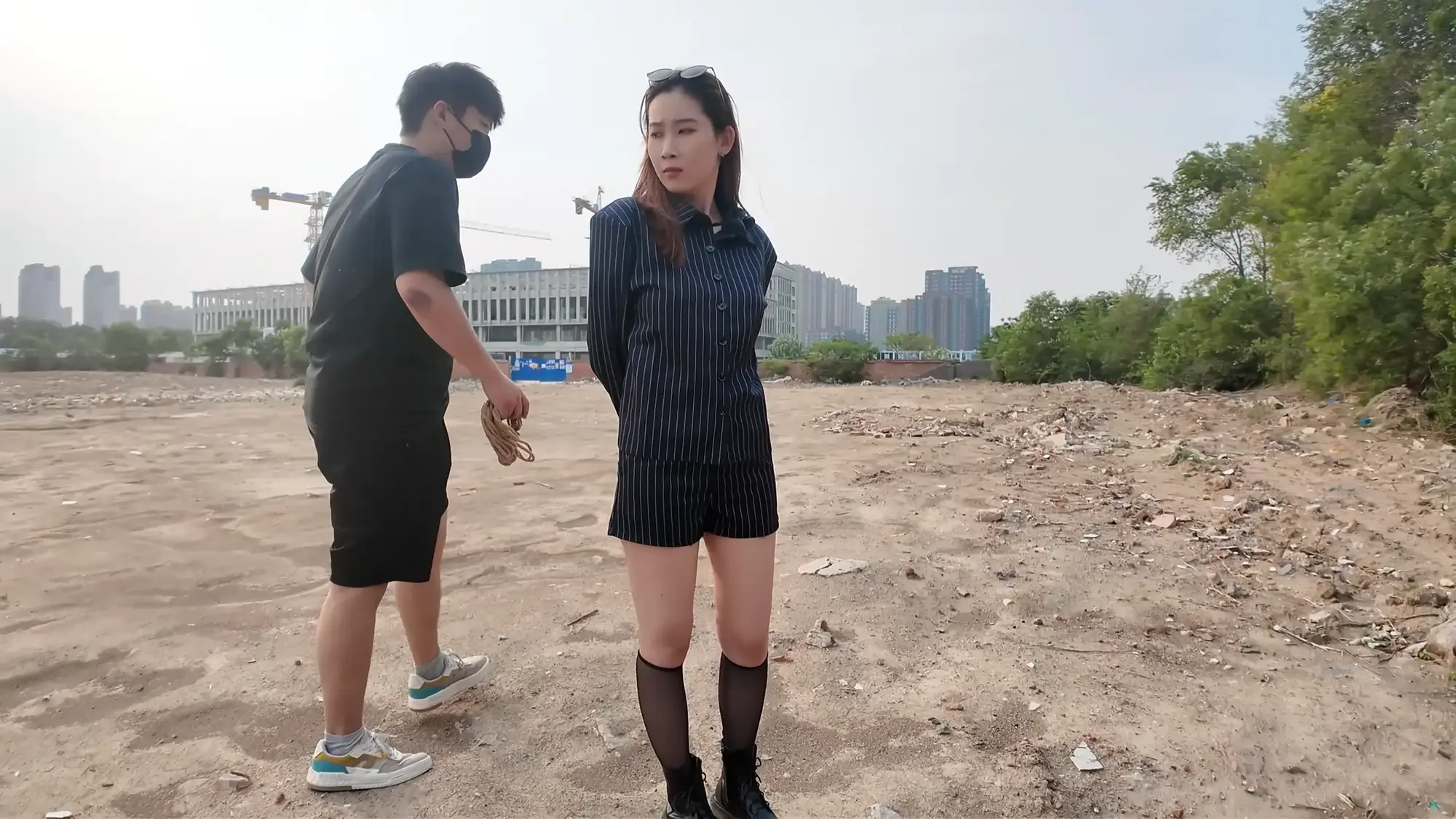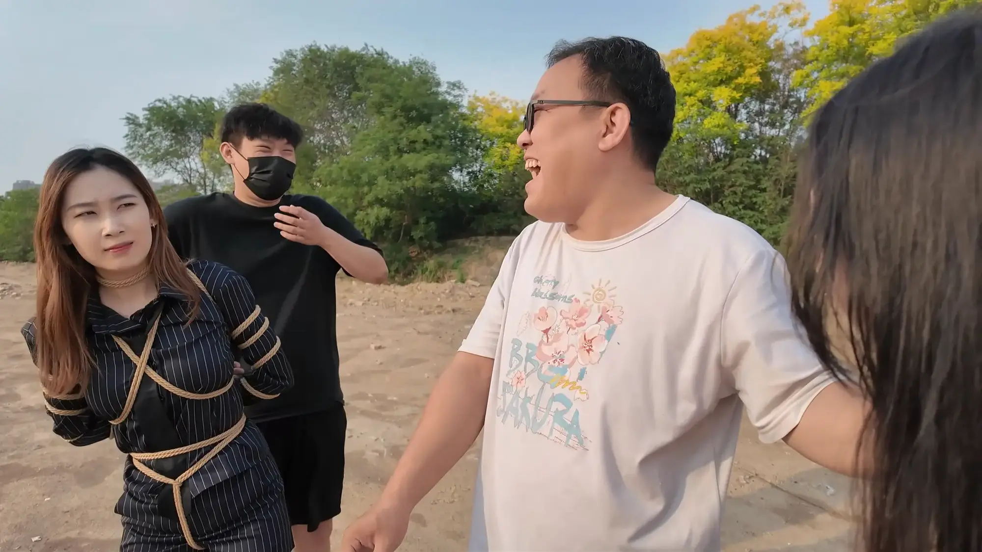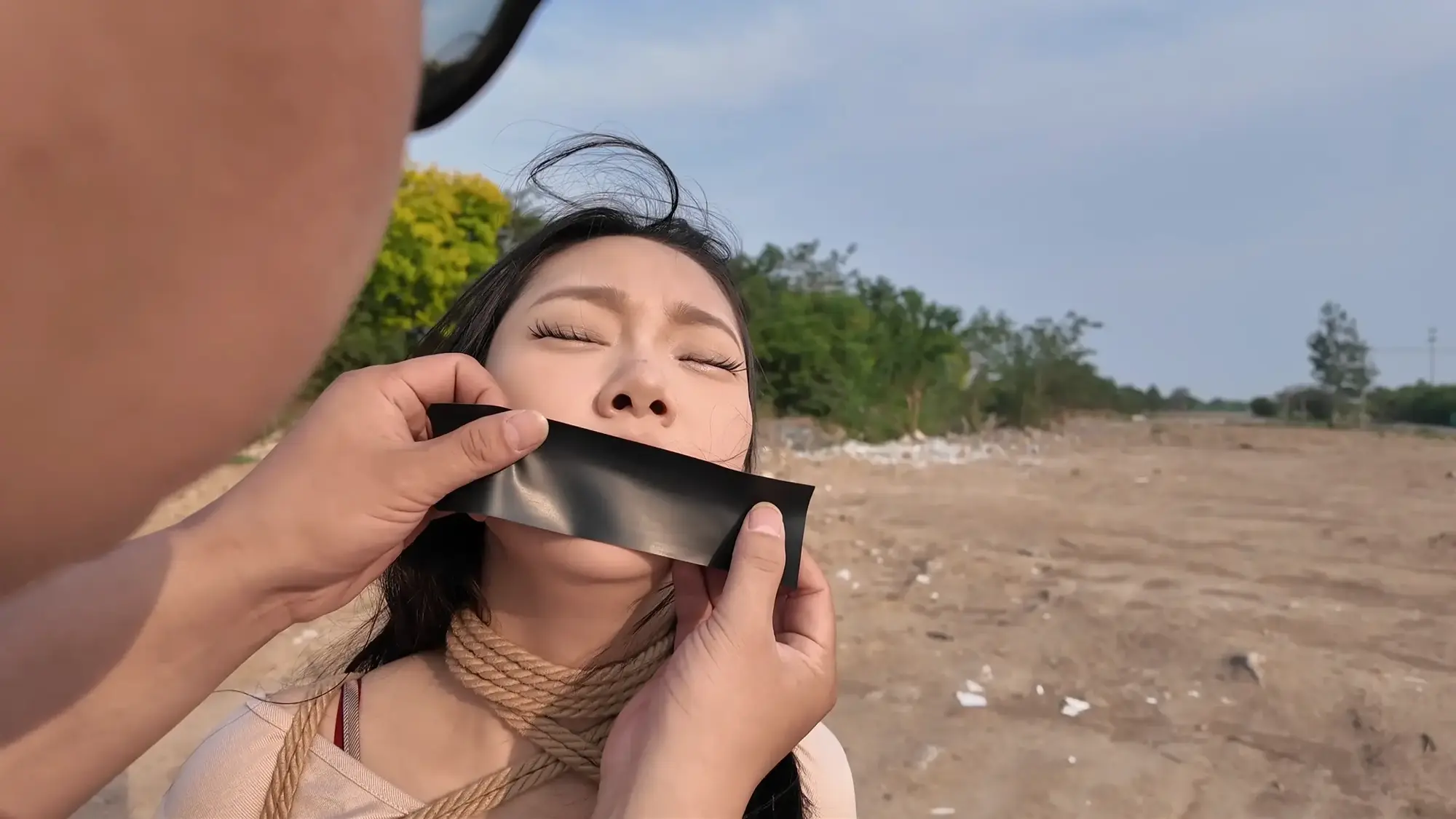 剧情南清抓住机会脱缚,成功制服了没有小弟保护的雷姐(佳雯),南清将雷姐绑起来作为人质,但雷姐的手下开车很快追了上来,躲在角落里的南清按住雷姐,警告她不要乱叫,正在南清四周环顾考虑如何逃跑的间隙,雷姐借机撞倒南清,站起身呼救,听到声音的小弟终于发现了南清,南清本想逃走但小弟威胁她敢乱动就开枪,走投无路的南清举起双手投降,再次被小弟五花大绑起来。小弟将南清绑好后将她压了过来,一旁的雷姐不停挣扎,小弟笑嘻嘻的撕掉她嘴上的胶布,雷姐非常生气,训斥小弟为什么不早点给她松绑,忍无可忍的小弟掐住了雷姐的脖子,告诉她自己不干了,南清警告他们叛徒没有好下场,小弟们听后哈哈大笑,并用力锤击雷姐的腹部泄愤,接着用胶布将雷姐的嘴再次堵上,两人压着南清和雷姐,带到了车里。将两人以羞耻的姿势放置在后备箱,小弟给南清换上了口球,任由两人在车内挣扎。过了一会儿,小弟们商量在车内办掉两人,完事后再将两人卖掉拿钱去潇洒,听到这话的南清和雷姐只能绝望的互相看着对方。雷姐被带到后座,身体被小弟乱摸,股绳也被不停拉扯,雷姐不服气的瞪着小弟,但也无能为力,只能被不停折磨,而一旁的南清则是先被脱掉鞋子,露出黑丝双脚被挠痒,雷姐也被脱掉鞋子,露出白色的袜子,被小弟按住腿不停挠痒。办完事后,两位美女气喘吁吁的躺在后备箱,小弟关上车门,开车带着两人离开。