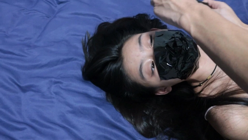 剧情一:凉兮因为背叛了自己的男友,而被男友控制并用胶带粘住面部窒息。