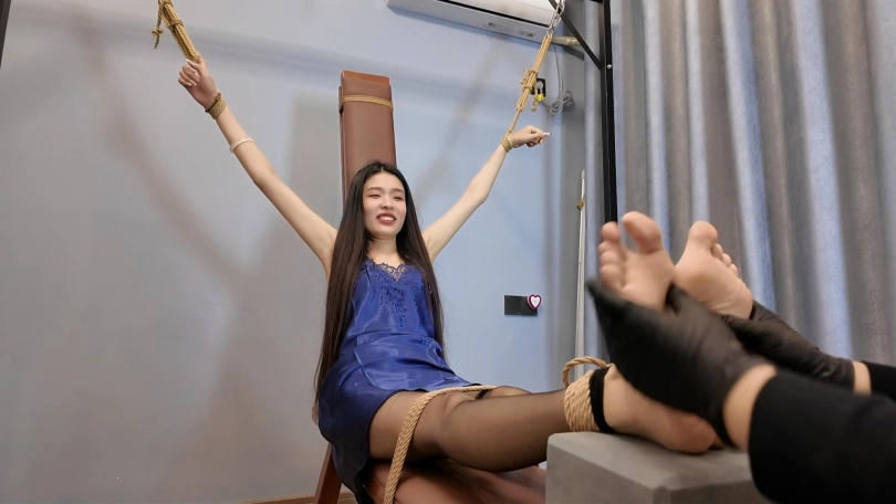 新模清禾特别怕痒,简直就是TK圣体,羽毛轻抚,玉足倩倩,这一双小脚长得也特别喜欢,裸足,老虎凳,TK,羽毛。一次性手套,刷子