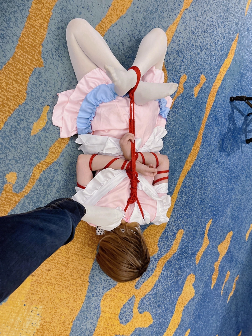 本期突出一个扎实。对穿着白丝女仆装的小妹妹当然要绑的结结实实啦~上半身采用了最扎实的传统五花,手臂上的肉被绳子勒成一截一截的正是五花扎实的魅力。