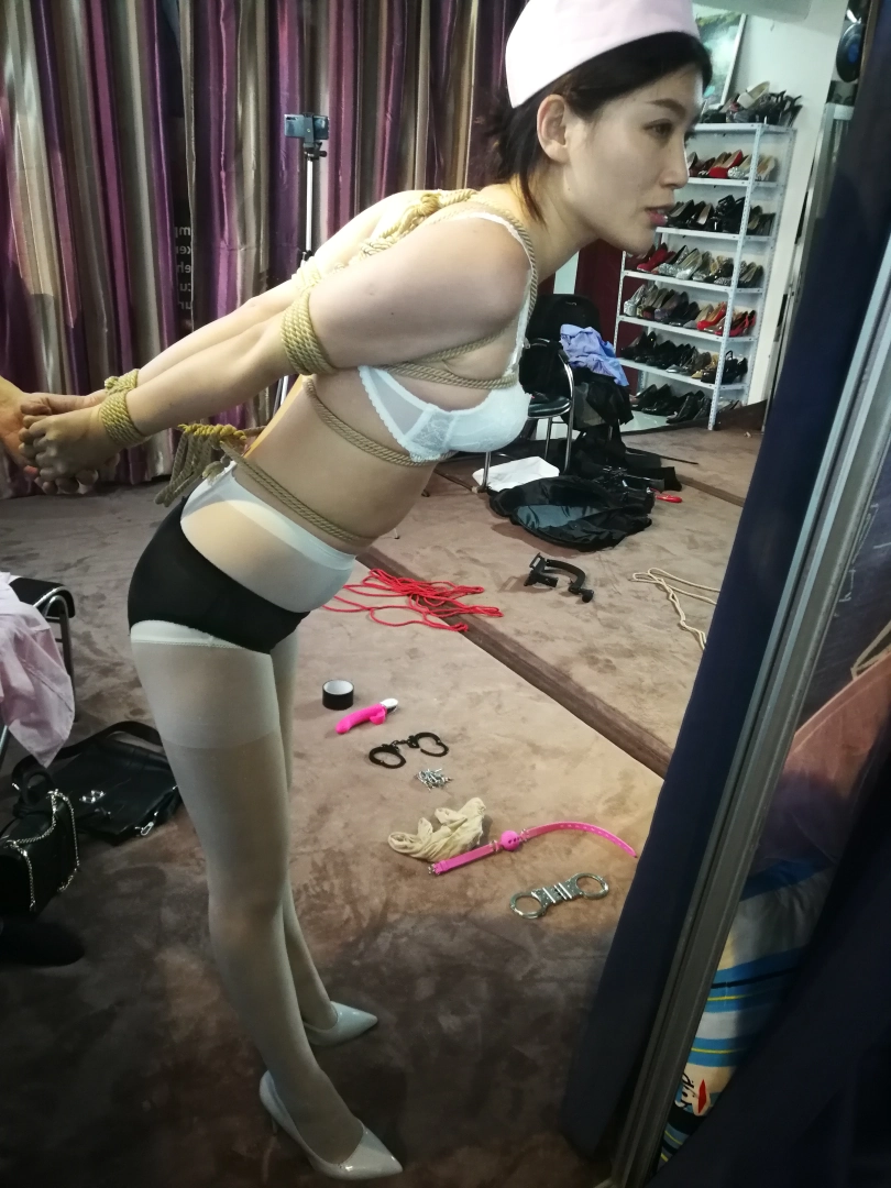 男主忽然捂紧女主的嘴,女主嗯嗯嗯的挣扎,然后男主对女主进行欧洲直臂缚,再进行胸缚,然后将女主的脚踝大腿,和膝盖分别捆绑起来,将肉色丝袜塞进女主口中,用黑色胶布封紧!一定要紧!!!男主看到女主被捆成这样,将护士裙子撩起露出内裤丝袜,解开胸部的扣子露出胸罩,抚摸了几下丝袜腿,然后说道,宝贝你好好挣扎哦!