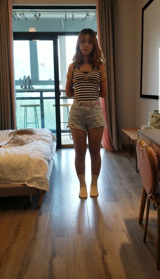 还是上次约到的新学妹。体验上瘾了~~。这次的视频时长大约有1小时40分钟左右。用了很多个不同的绑法。还尝试了我也从没有用过的马具口塞,妹子第一次尝试用口塞,口水要掉下来的时候,急的眼泪都出来了。害羞的脸通红。哈哈,中间还玩了一个小游戏。喜欢挠痒痒的朋友可以尝试一下啊。就是把妹子驷马捆好。然后脚心和腰分别挠痒痒30秒,不准动不准笑出声,动一下加20秒,笑出声加20秒~~~哈哈,贼有意思。