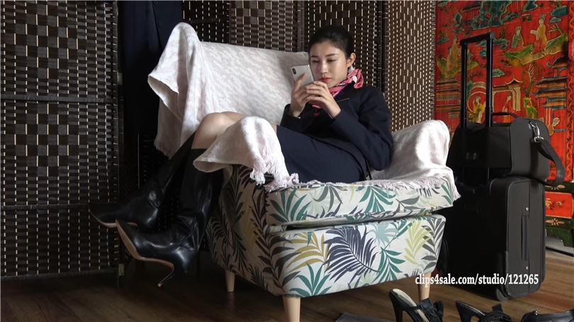 【K&M】空姐归家-下班回家换多双凉高+皮靴给几天不见的足控老公爽一把